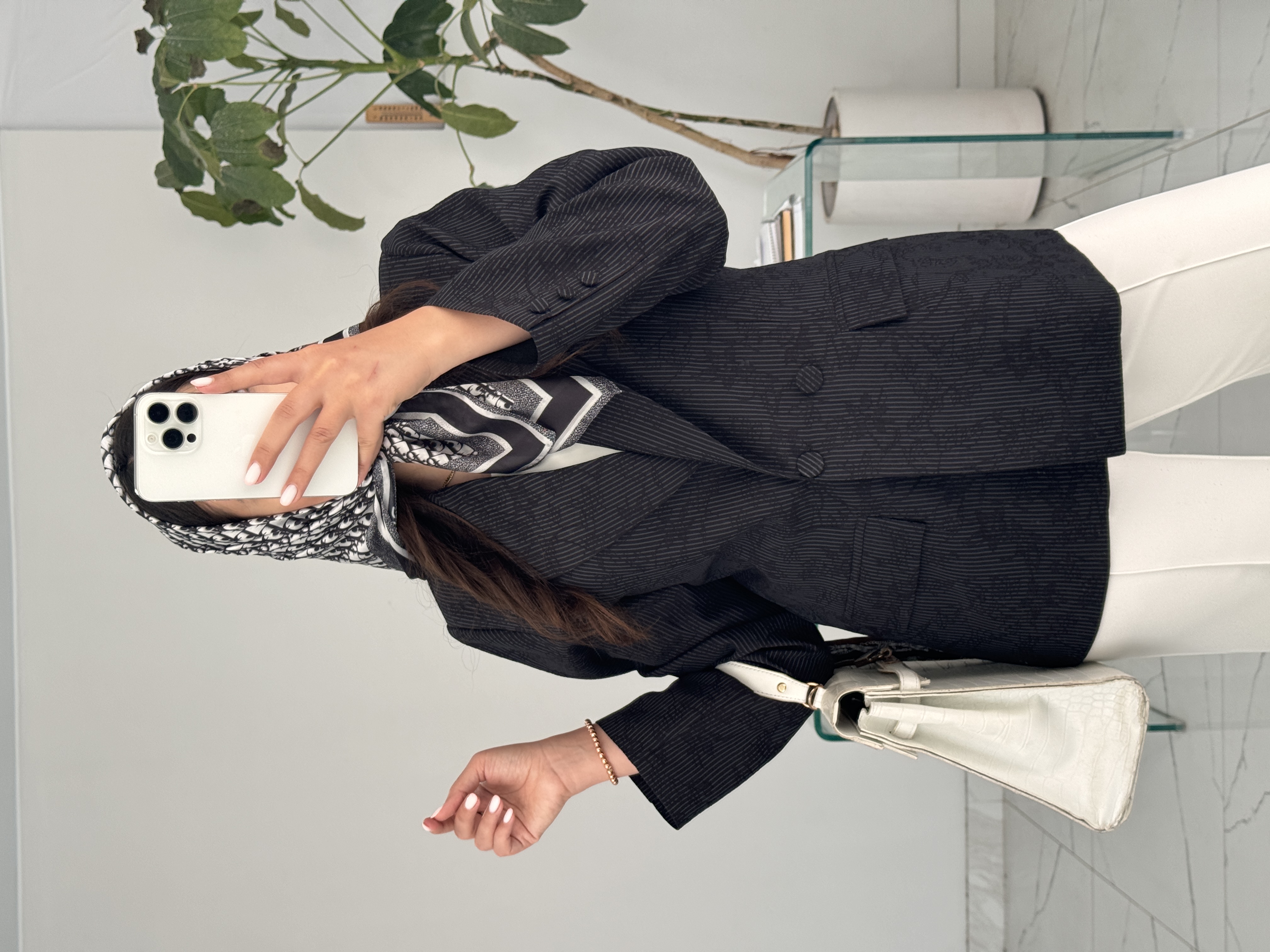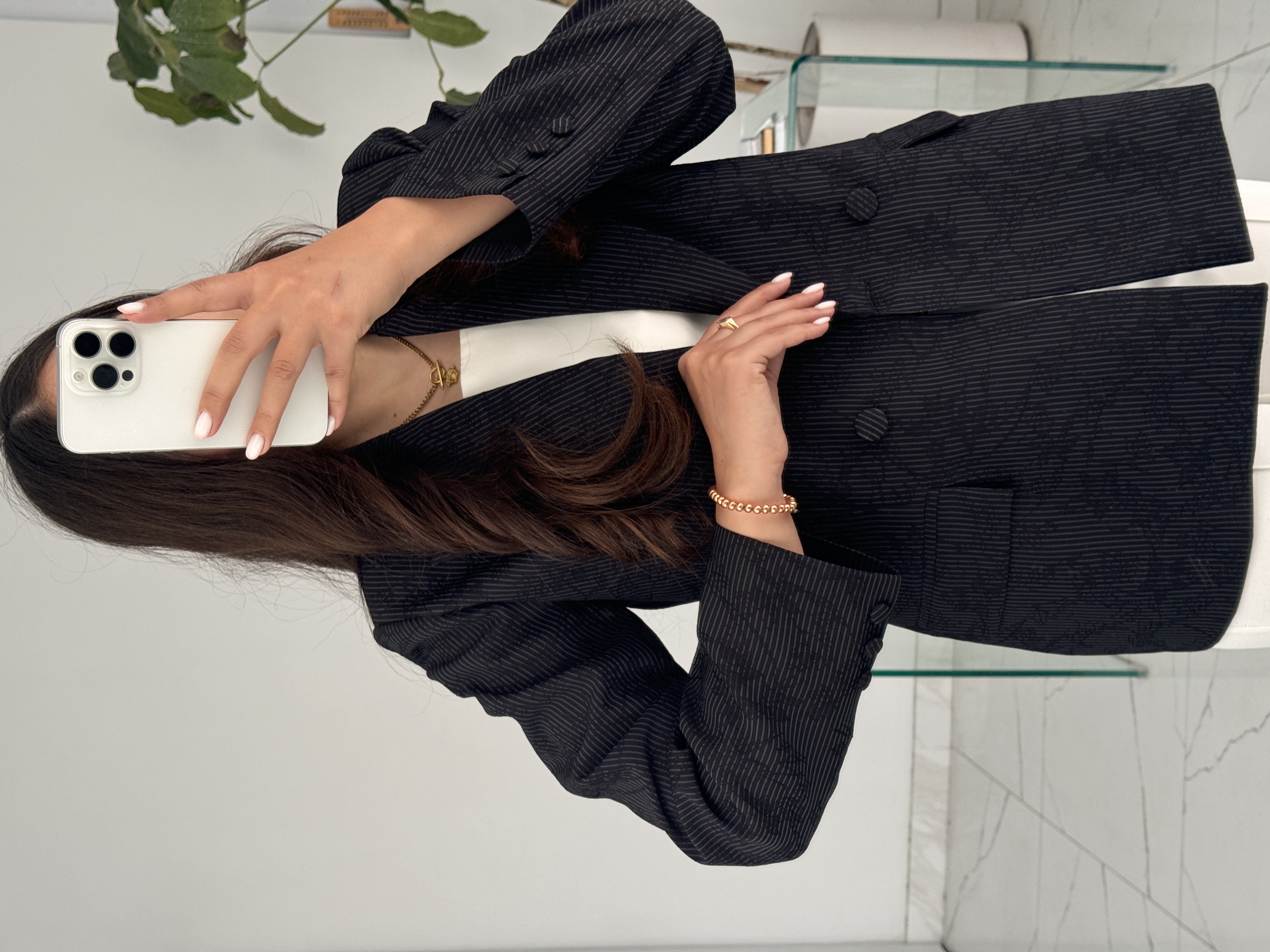 دارای ساسون و پنس و گودی کمر ، حالت کت اُوِر ندارد و فیت تن میباشد،