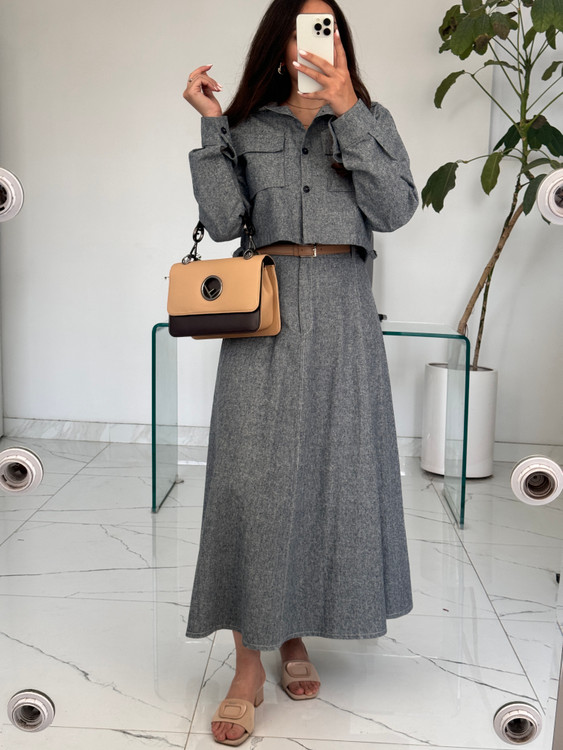 نوع پک: هر پک دارای دو ست کت و دامن طوسی و دو ست کت و دامن ذغالی